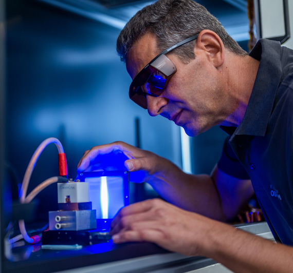 „Stark reflektierende Metalle wie Kupfer oder Gold absorbieren das blaue Lichtspektrum sieben- bis zwanzigmal besser als die infrarote Strahlung“, erklärt Dr. Harald König, Experte für Lasertechnologie bei OSRAM in Regensburg. „Die Lösung liegt im Einsatz kürzerer Lichtwellenlängen, sprich einer Verschiebung in den Blaubereich. Speziell die Wellenlänge von 450 Nanometern eignet sich zur industriellen Bearbeitung von Buntmetallen.