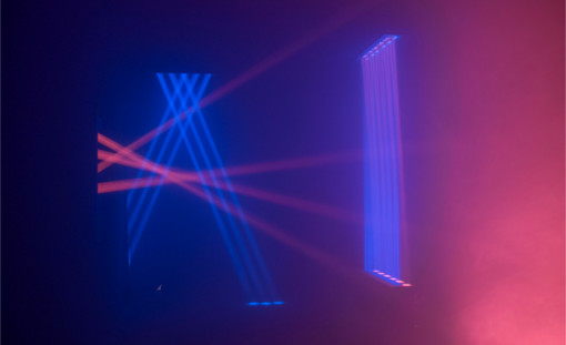 geometrische Formen in den Raum. Aufgrund des Zusammenspiels der verschiedenen Faktoren geben die so entstehenden Lichtwände und Lichtsäulen den Eindruck einer fünften Dimension und machen Licht (er)fassbar.