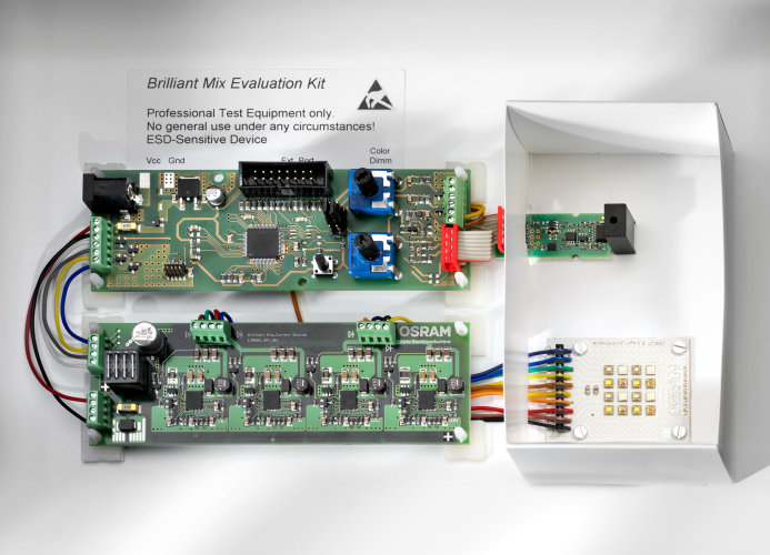 Das LED-Farbmischkonzept Brilliant Mix von Osram Opto Semiconductors lässt sich dank des neuen Brilliant Mix Universal-Controllers von Elec-Con technology jetzt leichter ansteuern. Den Controller gibt es als Standard-Variante – mit und ohne Sensor – sowie in kundenspezifischer Ausführung. Er ist adaptierbar an gängige Standards der Gebäudesystemtechnik, wie DALI, KNX oder EIB. Das Controller-Konzept wurde im Rahmen des Netzwerks LED Light for you entwickelt.