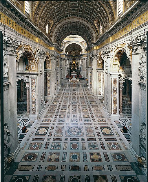 Der Petersdom, in dem bis zu 20.000 Menschen Platz finden, ist rund 190 Meter lang, die Breite der drei Kirchenschiffe beträgt je 58 Meter, das zentrale Kirchenschiff weist bis zum höchsten Punkt des Gewölbes eine Höhe von knapp 46 Metern auf und die Kuppel erreicht eine Höhe von etwa 136 Metern bis zum Kreuz. Die Innenräume, die durch großflächigen Mosaikschmuck geprägt werden, bilden das wertvolle Schmuckkästchen für einige der berühmtesten Kunstwerke der Welt, darunter der Baldachin von Bernini und die Statue Pietà von Michelangelo.