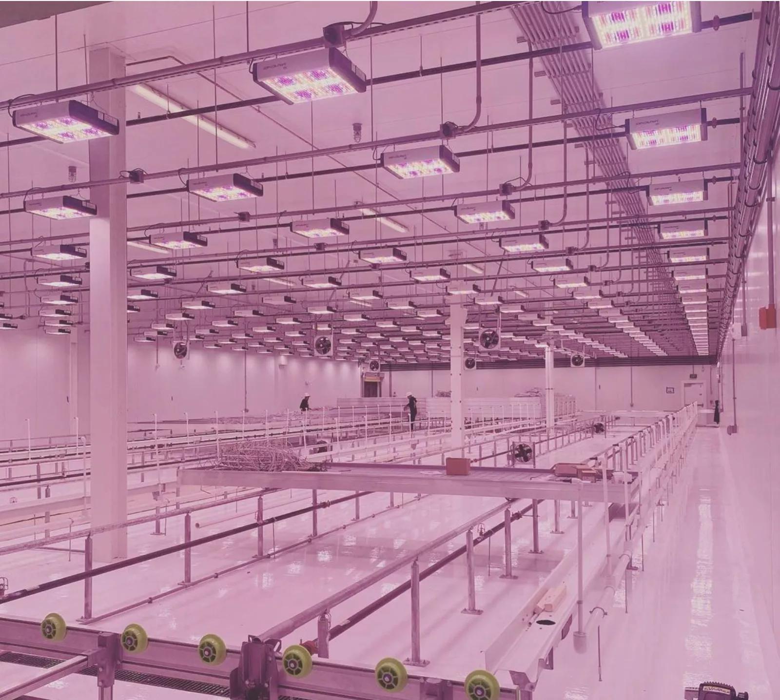 이 혁신적인 조명은 밀버리 시설의 첨단 원예 생산에 적용되어 자체 조직 배양 증식과 식물을 고효율 이동식 테이블로 이동하는 능률적인 작업 흐름을 지원합니다. 주문형 관비 시스템은 룸을 24개 구역으로 나눠 다양한 여러 품종을 정교하게 관리하고 정확하고 맞춤화된 용량의 필수 영양소를 공급함으로써 최고급 농산물을 생산합니다.