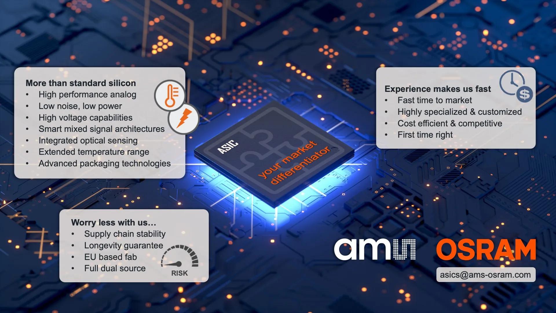 Contact ams OSRAM’s ASIC experts to review your reliability, integration, or power challenges.