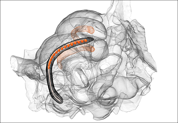 “In contrast, we can bundle light and thus stimulate the auditory nerve with much greater focus. A hundred or more frequency channels are possible – so all forms of music can be enjoyed,” adds Uli Schwarz. This requires a chain of individually controllable light sources so that different sections along the cochlea can be selectively stimulated, with each section corresponding to a different pitch.