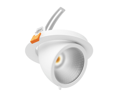 The lamp unit of the Punctoled Spot downlight can be pulled out of the ceiling to provide lighting devoid of shadowing. The spotlight can also be used for illuminating shelves thanks to pivoting up to 55°. Punctoled Spot is fixed into the ceiling via clips without tools and started up via plug & play.
