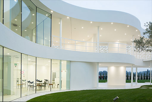 All is planned to ensure that a focus is placed on people, and architecture and light are intended to significantly contribute to the well-being of the company’s 140 employees. A complex with a futuristic character has been created that radiates an atmosphere of lightness, and for realisation of his lighting concept the designer Beppe Riboli placed his trust in Osram expertise. Thanks to this holistic approach the completely controllable and dimmable LED luminaires harmonise perfectly and also form the ideal backdrop for Riboli's innovative architectural creation.