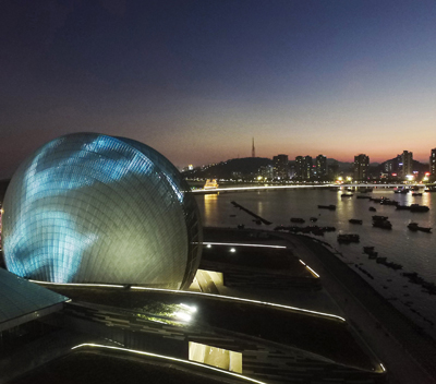 The new opera house with its two giant shells at heights of 60 and 90 metres has become the new landmark of the Southern Chinese city of Zhuhai. The building consists of a concert hall with 1,550 seats and a theatre with 500 seats and offers citizens and tourists to the city an unforgettable, dynamic experience with light from afar. Coloured, individually controllable LED Dots (Traxon Dot-XL 9 RGB) with a total of 51,000 pixels were installed behind the aluminium facade perforated on both sides and enable highly spectacular animations with video and light on the outer surfaces of the shells. Programming and playback of the images and animations is with e:cue control technology.
