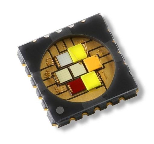 The new LED features a 50W package with high-current red, green and blue dies, as well as cyan, two phosphor-converted lime dies and phosphor-converted amber die. The dies are closely packed in a low thermal resistance package with an integrated flat glass lens. The addition of high performance cyan, lime and amber to the traditional RGB color in a compact light-emitting surface of 3.4mm x 3.4mm, when coupled with secondary optics, produces an ultra-bright light with narrow beam, richer and wider color combination, as well as high CRI white, all from a single LED emitter.