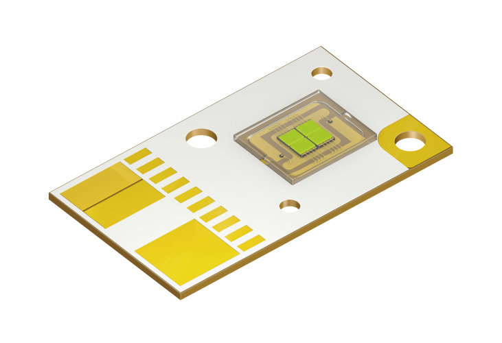 The two new light emitting diodes offer so much luminous flux that they can be used in office projectors with brightness levels of up to 1700 lumen. At the heart of the product is a 2 mm² LED high-current chip based on state-of-the-art thin-film and UX:3 technologies. The two LED versions contain two (P1W) or four chips (P2W) with a total luminous area of 4 mm² and 8 mm² respectively.