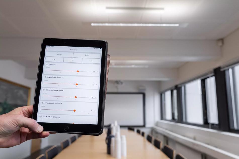 When the aging lighting system in an office building in Kolding, Denmark no longer worked properly, the owners looked for an economic upgrade solution. Their lighting designer chose HubSense. With the intuitive HubSense commissioning app provided by Osram, the requirements for the new system could be planned and commissioned in advance off-site. On-site implementation of the system took only one day and did not affect ongoing office operations. Installation work was limited to installing control gear and a sensor in each luminaire. App-based wireless identification of the luminaires enabled the luminaires to be quickly assigned to the desired lighting zones. Predefined lighting control profiles simplified and sped up commissioning.