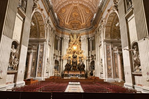 St. Peter's Basilica is 190 meters long and is visited daily by 27,000 visitors. The three ships each have a width of 58 meters; the central nave measures almost 46 meters at the highest point of the vault. The dome is about 137 meters high. Thanks to the new lighting concept, every detail of this architectural masterpiece now can be seen in all its splendor and beauty for the first time since construction began in 1506.