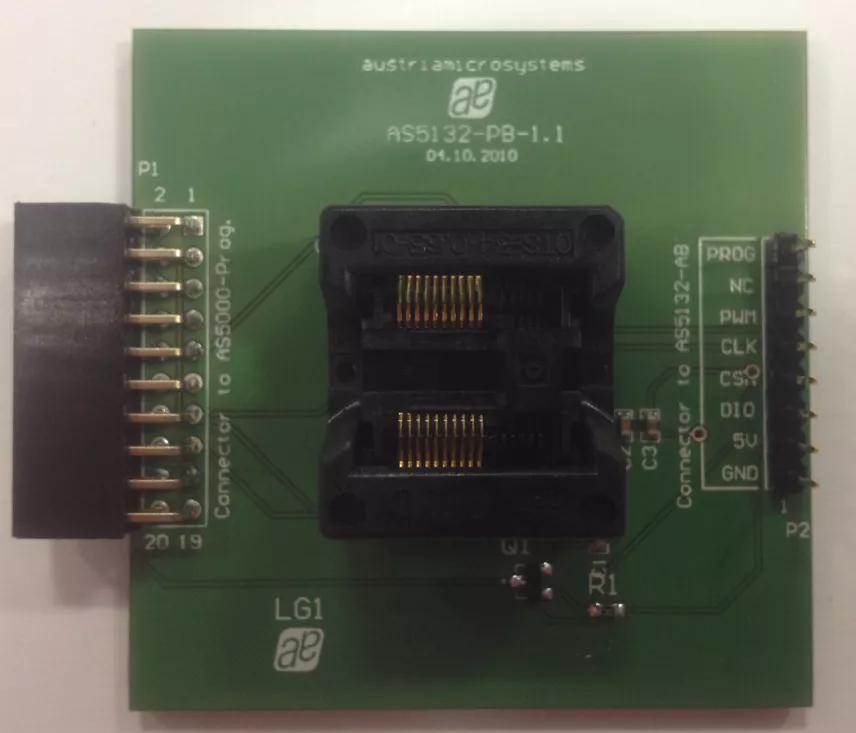 The AS5132-PB programming board is used for quick programming the AS5132 position sensor without soldering due to its ZIF socket. This board must be used in combination with the SD4Y-Programmer, which provides the chip with the adequate OTP programming commands.