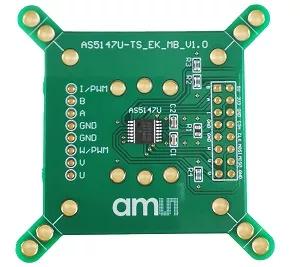 The AS5x47U Motor Board is a simple PCB which is designed to adapt to standard size BLDC or stepper motors for easy and quick evaluation of AS5x47U. The sensor and external components (capacitors, etc.) are already soldered to the PCB. The motor board is equipped by default with the AS5147U (automotive qualified), which has the same functions/behavior as AS5047U (no difference for evaluation use)