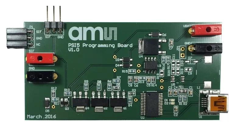 The PSI5 programmer board is used for programming PSI5 products such as the AS5172 product family. The programmer board can only program the device through UART over PSI5 protocol. For reading PSI5 data a dedicated PSI5 transceiver is required.