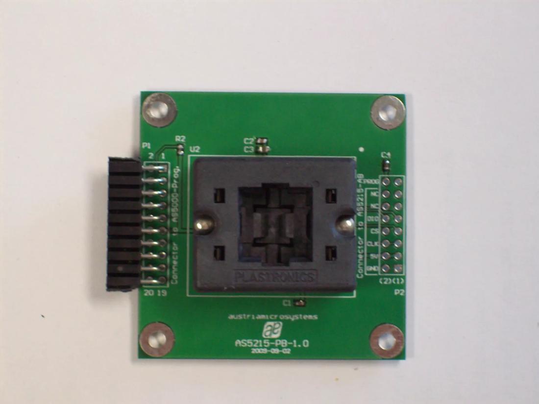 The AS5215-PB programming board is used for quick programming the AS5215 automotive position sensor without soldering due to its ZIF socket. This board must be used in combination with the SD4Y-Programmer, which provides the chip with the adequate OTP programming commands.
