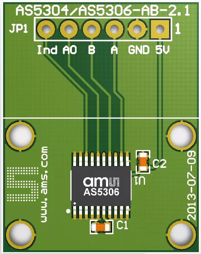 The AS5306-DK-AB Adapter Board allows you an easy-to-use evaluation of the principle function of the AS5306 linear incremental magnetic position sensor in your own system design. This small factor board includes the magnetic position sensor with its necessary external components. All relevant signals are available on a 2.54mm header footprint and can be easily wired to your own application.