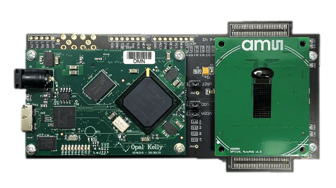The AS5950 is a CT sensor device with a 64-channel ADC and integrated photodiodes. The Evaluation Kit provides a complete system to evaluate the performance parameters of the image sensor. It consists of a carrier board, FPGA, power supply, USB 3.0 cable, and an adapter board with the AS5950 IC. A Windows based evaluation software is available. Please request the software from your ams representative to get familiar with the configuration of the product.