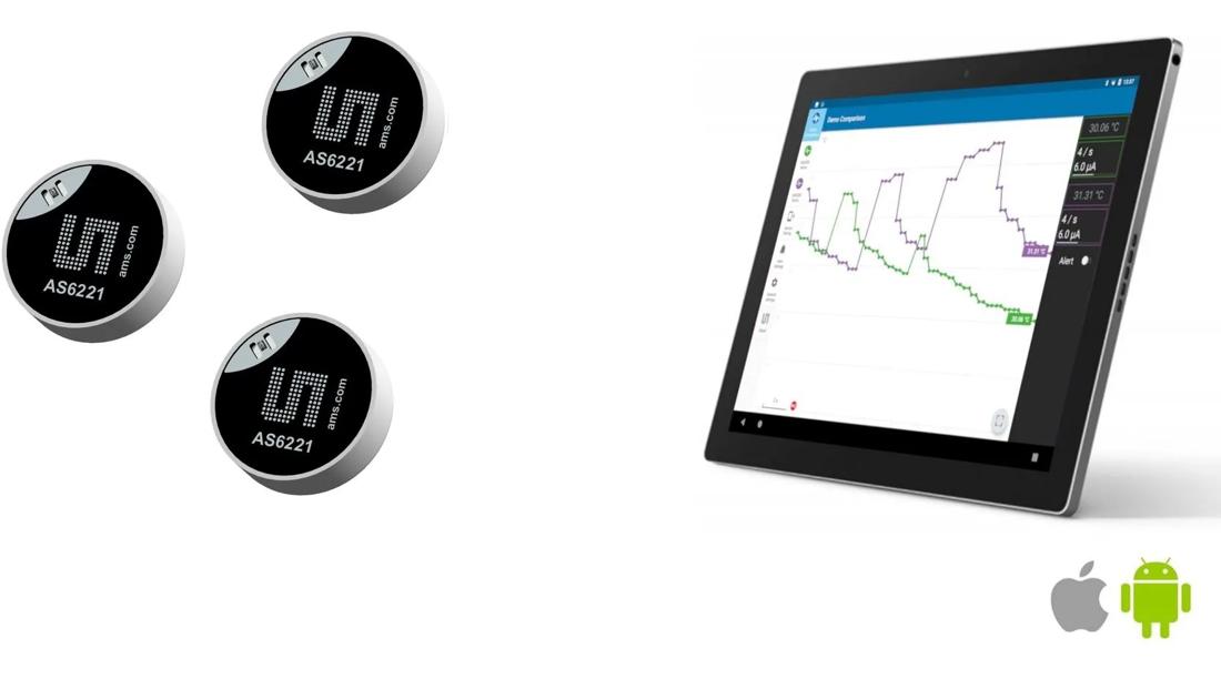 The AS6221 demo kit offers an easy-to-use exploration of the ams digital temperature sensor.It can be connected to your mobile device using a wireless interface. By downloading the companion app from the App Store or Google Play Store it is possible to modify all settings of the sensor and observe the impact on power consumption and conversion rate. Up to three demos could be paired at the same time to help you find the optimal settings for your needs. It even enables you to record a temperature sequence to compare it with different settings of the temperature sensor. Finally, the app does provide the key information about the product and helps to understand the principals of the alert mode. The demo kit consists of an AS6221 temperature button and a CR2023 coin cell. By pulling the flap, the demo is enabled and ready to be paired with the app.