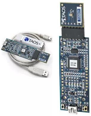 The TCS3471 Evaluation Kit comes with everything needed to evaluate the TCS3471 color sensor. The evaluation kit comprises of a main controller board with a PIC microcontroller, an industry standard USB 2.0 interface (with an USB cable), a TCS3471 daughter card, "plug-n-play" USB HID class drivers, software documentation, and GUI software allowing users to control the color sensor settings as the PIC takes the TCS3471 I2C digital outputs to calculate illuminance in lux and color temperature.