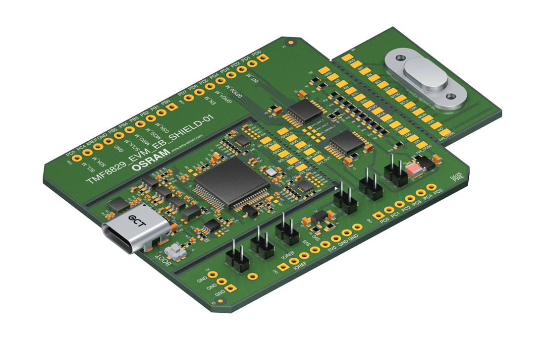 Product status: Pre-ProductionThe TMF8829 is a direct time-of-flight (dToF) sensor with configurable resolution of 8x8, 16x16, 32x32 & 48x32. The device is based on SPAD, TDC, and histogram technology and achieves a detection range of up to 11000 mm with an 80° field of view. All processing of the raw data is performed on-chip, and the TMF8829 provides distance information along with confidence values, signal amplitude, and ambient light on its interface. Internally, the TMF8829 uses dToF histograms and peak detection, and therefore, it is highly tolerant to smudges on the cover glass. Additionally, the TMF8829 can handle multiple objects per depth point simultaneously without degrading accuracy. It reports the distance of all depth points with a resolution of 0.25 mm. The device uses an I3C (I²C compatible) communication interface and a fully featured SPI interface for control and raw data streaming. A VBUS supply pin allows operation of the I²C/I3C or SPI with 1.2V, 1.8V, or 3V I/O supplies. Raw data streaming, including all algorithm peak detection results, allows further processing on the host for “AI-enabled” applications. The TMF8829 is a fully contained optical module measuring only 5.7 mm x 2.9 mm x 1.5 mm.