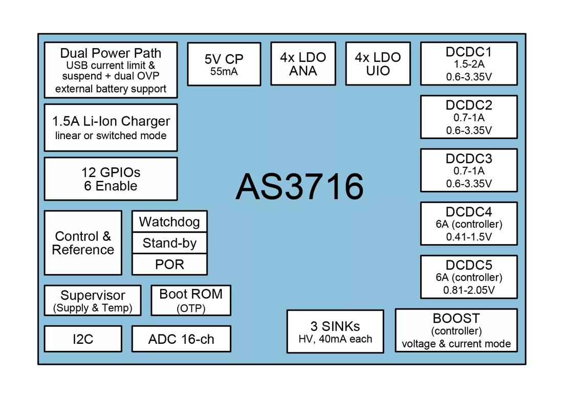 - 4MHz DC-DC bucks, supervisor, general purpose IOs, ADC